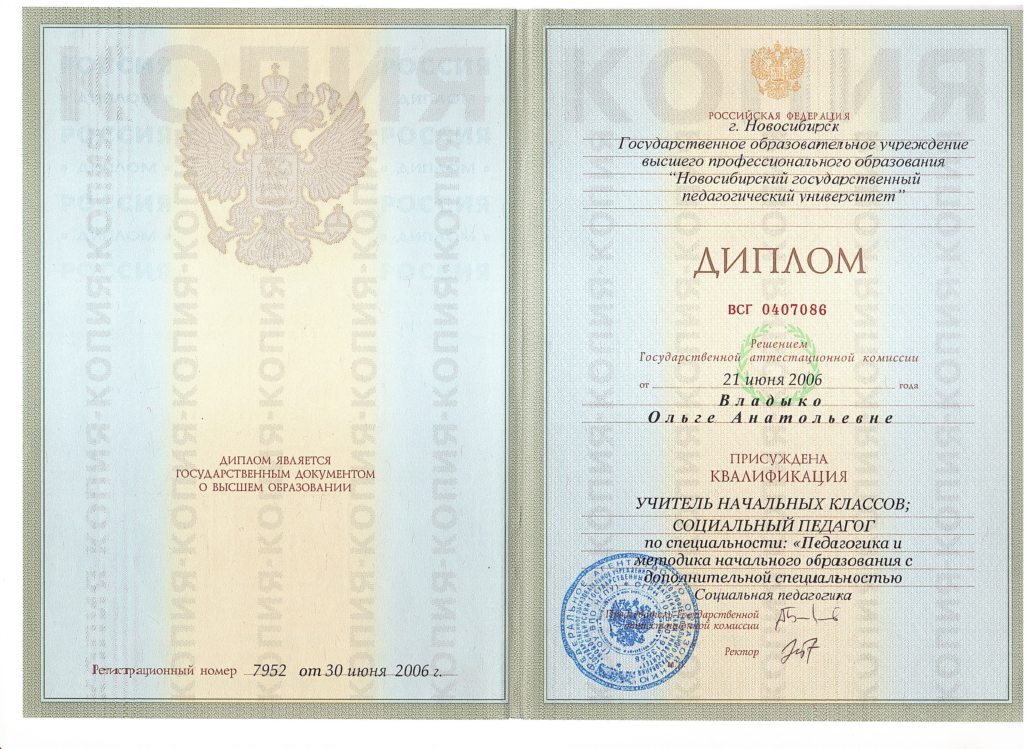 Диплом о высшем образовании